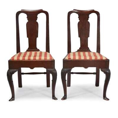 Pair of Queen Anne walnut side chairs circa 1730