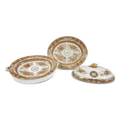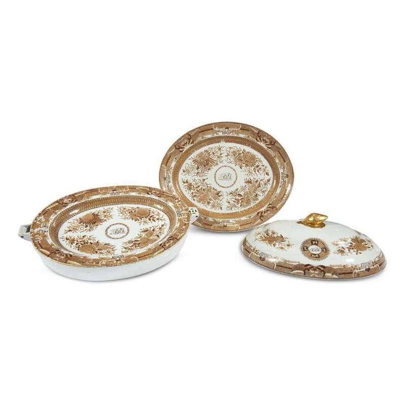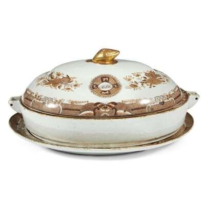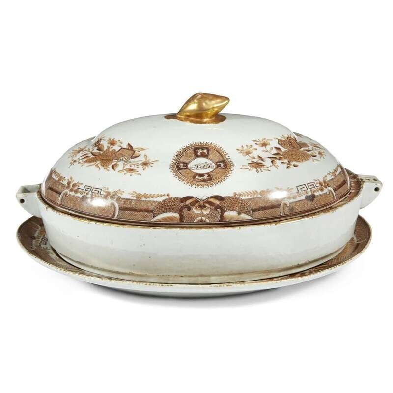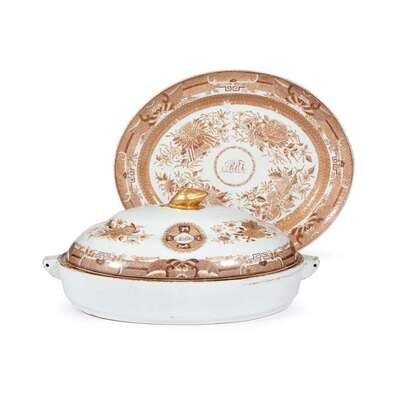 Thomson Family Chinese Export porcelain sepia "Fitzhugh" palette covered warming dish and platter circa 1820