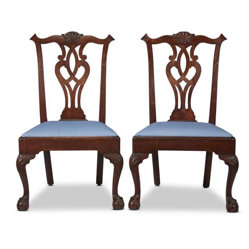 Pair of Chippendale carved walnut side chairs Philadelphia, PA, circa 1765