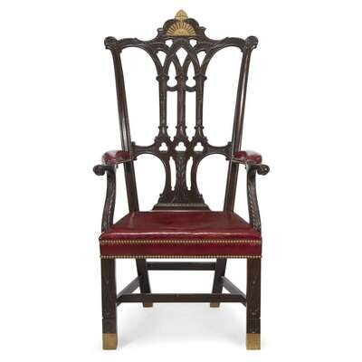 Replica of the Chippendale carved mahogany and gilt-painted "Rising Sun" armchair Attributed to the Workshop of Percy Feldenkreis, Germantown, PA, early