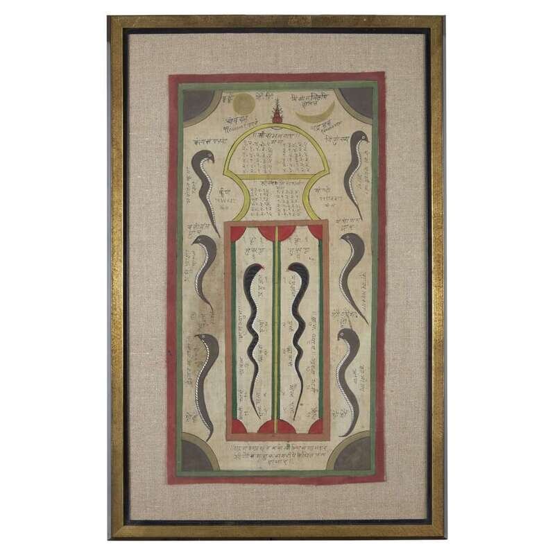 Esoteric diagram Incorporating serpents, and sun and moon. Color on fabric. Framed, matted, and glazed.