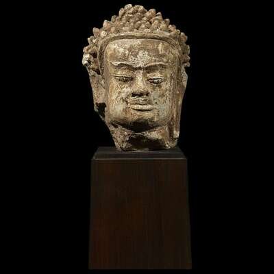 A Thai stucco head of a Buddha Haripunjaya, circa 10th-13th century