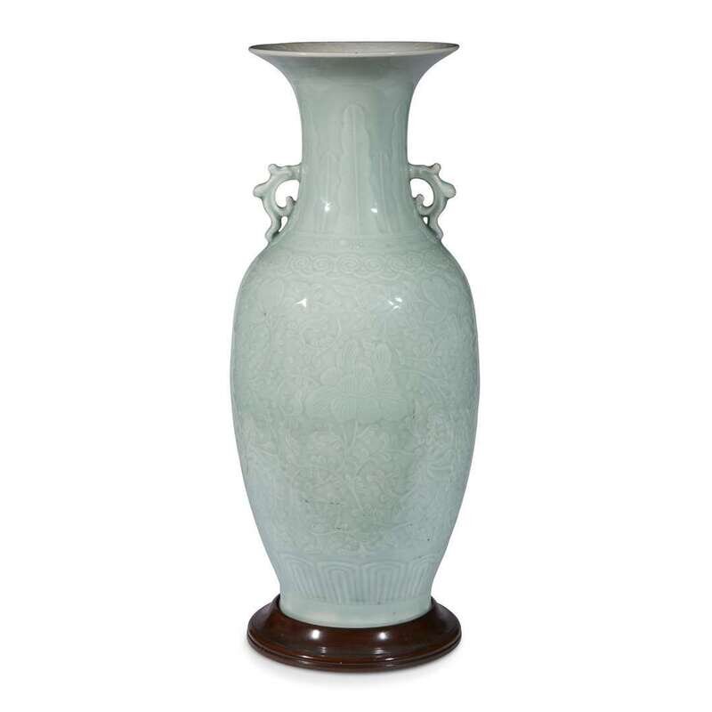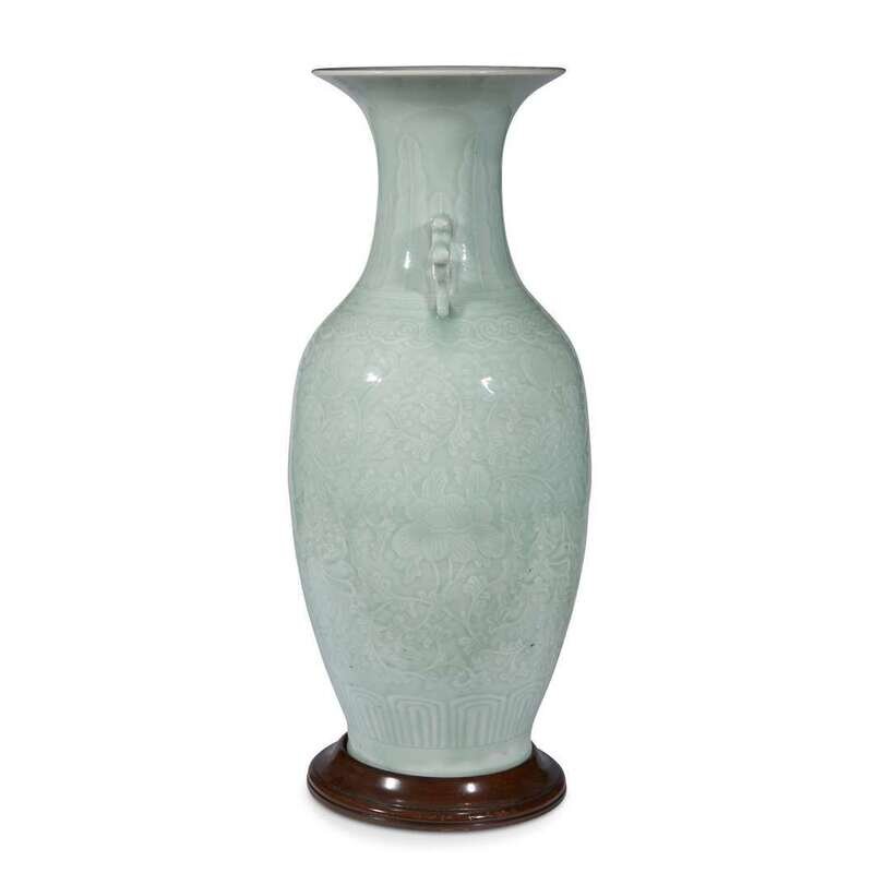 A large Chinese celadon-glazed baluster vase Qing dynasty