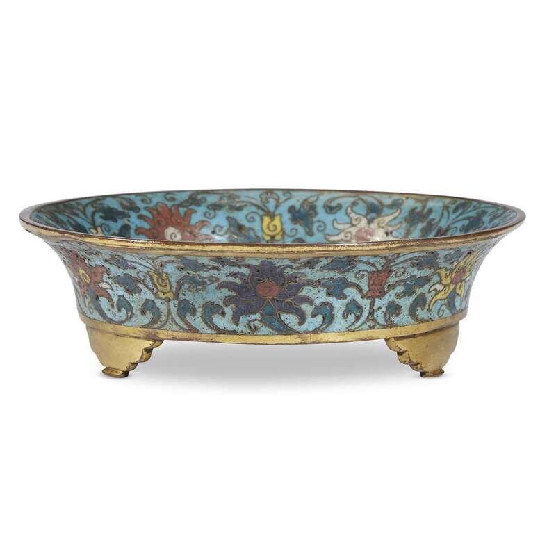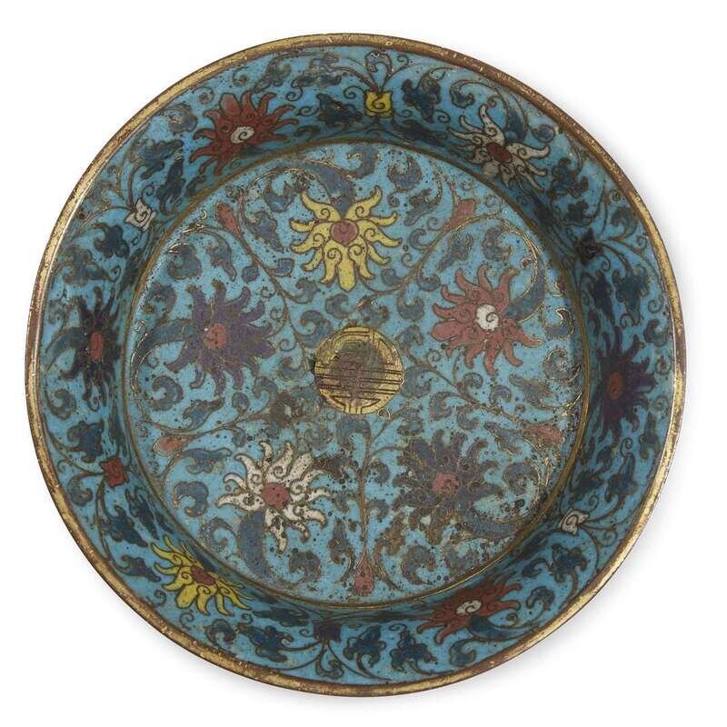 A Chinese cloisonné saucer dish 16th/17th century with 18th/19th century alterations and additions