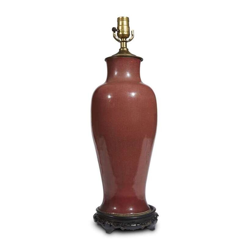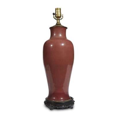 A Chinese copper-red glazed baluster vase, now mounted as a lamp the porcelain possibly 18th century