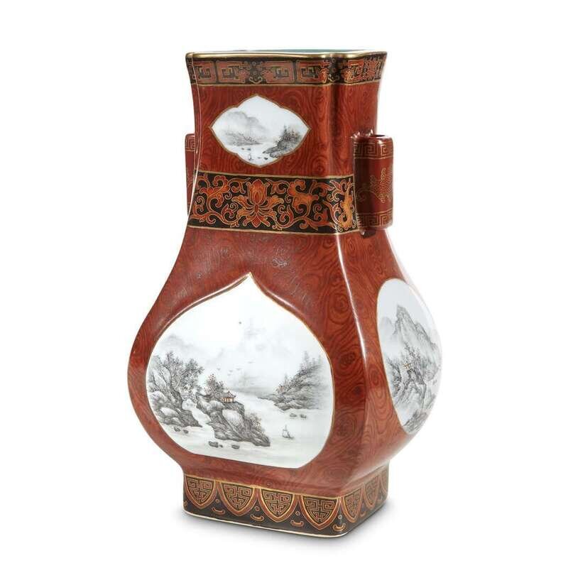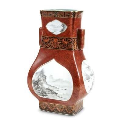 A finely-decorated Chinese porcelain vase, fanghu Qianlong six-character seal mark, 20th century