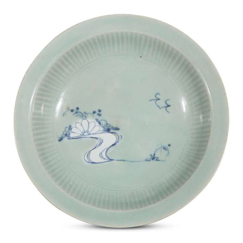 A Japanese celadon-glazed and blue and white footed bowl Edo period, 18th/19th century