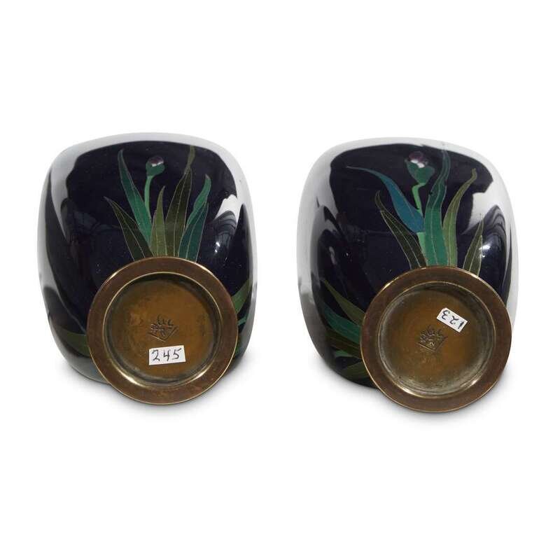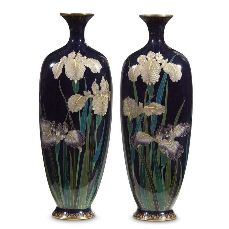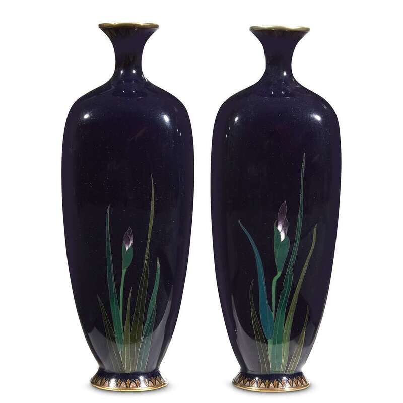 A pair of small Japanese cloisonné "Iris" vases, attributed to Sato Rinemon Meiji period
