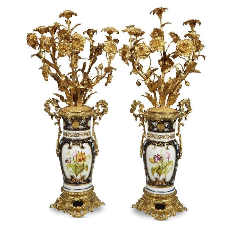 The candlearms later added, the vase mounts further stamped "LF" possibly for Lerolle Frères. (2).