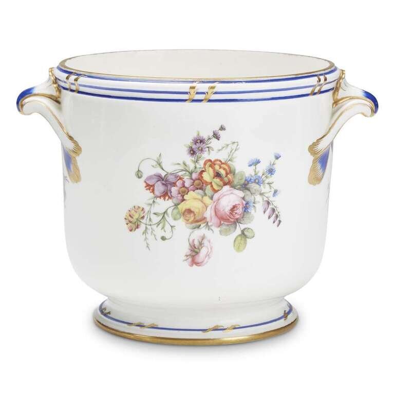 A Sèvres hand-painted and parcel-gilt soft-paste porcelain seau dated 1775