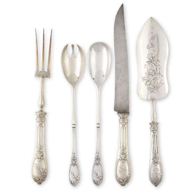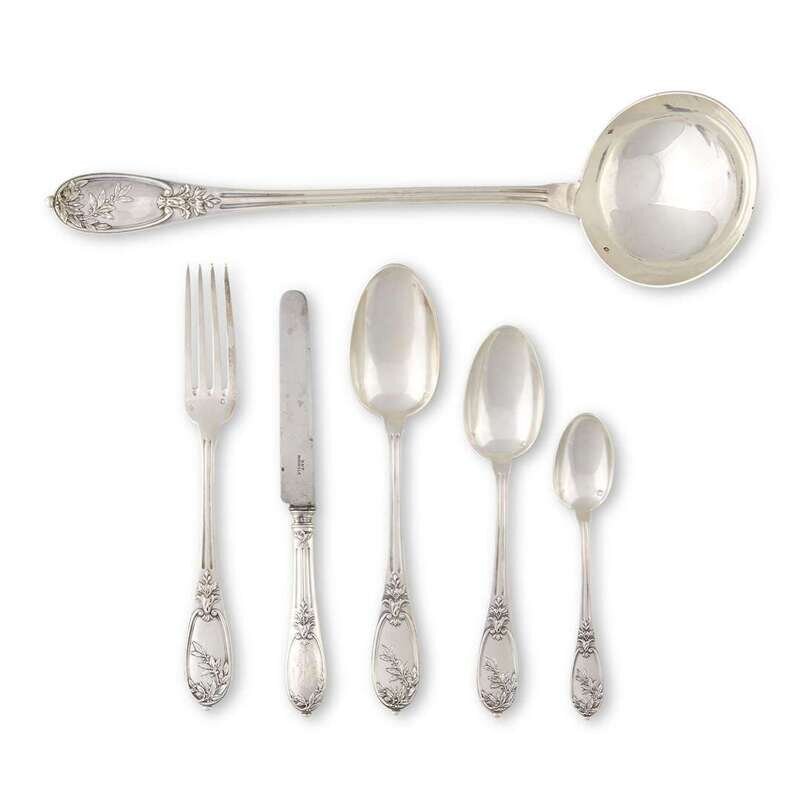 A French silver five-piece dinner service for eighteen Hénin & Vivier, Paris, 19th century