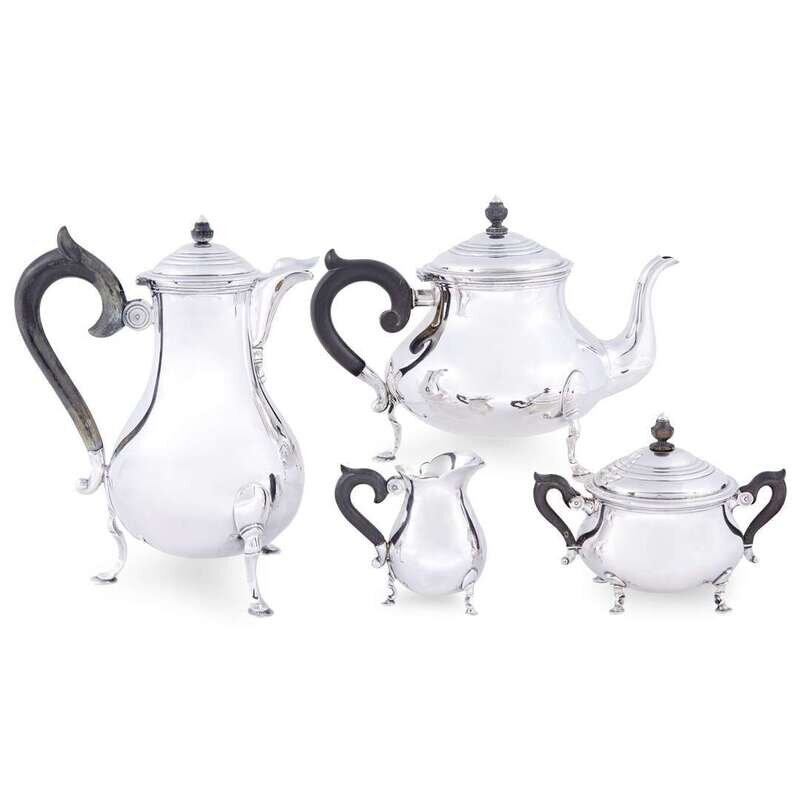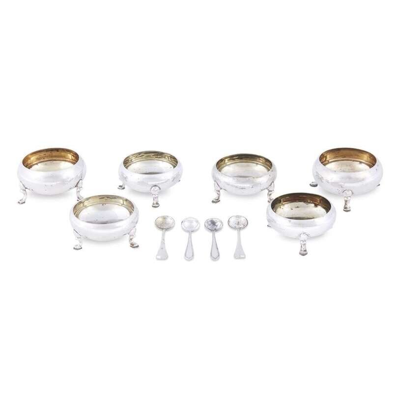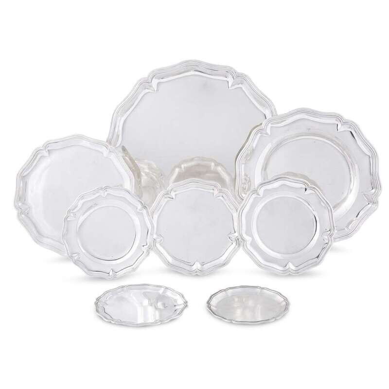 Comprising eight serving trays, a four-piece tea and coffee service, and six salts with four associated salt spoons. (22).