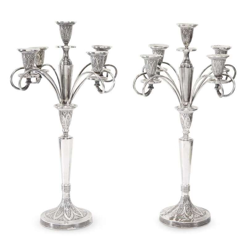A pair of Austrian silver five-light candelabra maker's mark JJB, Vienna, circa 1880-1900