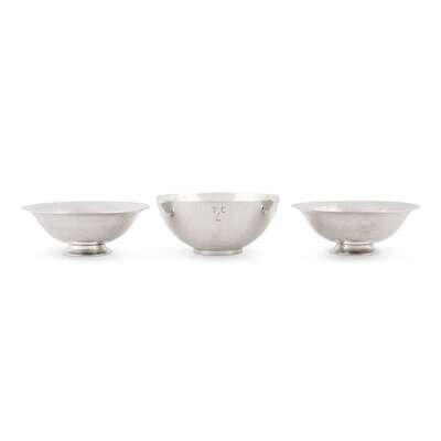Each marked to bottom, model number 575 C; sold together with another Georg Jensen bowl with model number 580. (3).