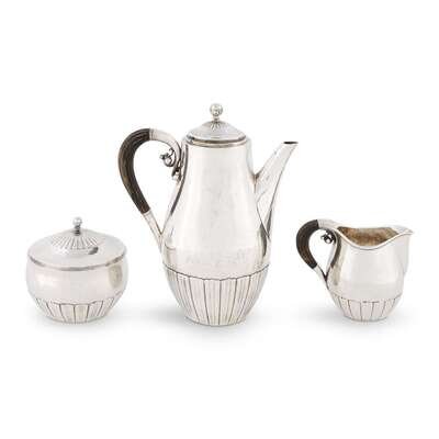 A Danish three piece sterling silver coffee service Georg Jensen, Copenhagen, circa 1930