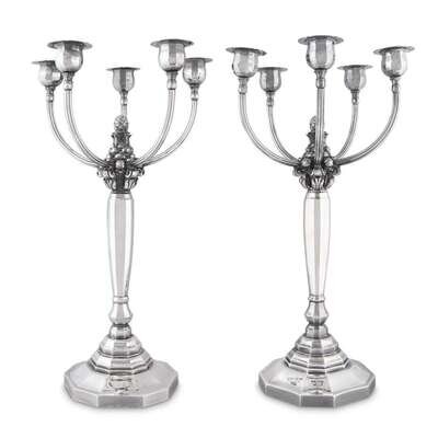 A pair of Danish sterling silver five light table candelabra Johan Rohde for Georg Jensen, Copenhagen, after 1945