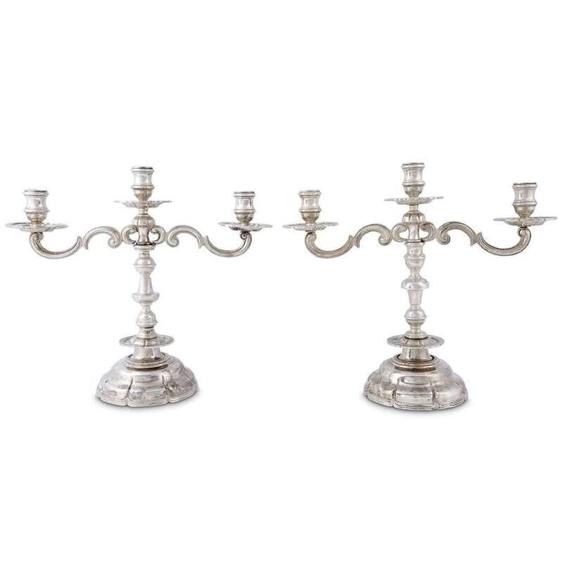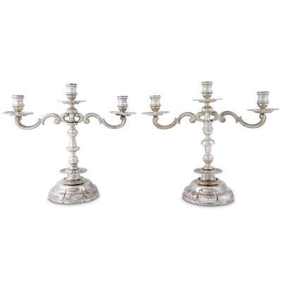 A pair of Mexican sterling silver three-light candelabra Sanborns, Mexico, 20th century