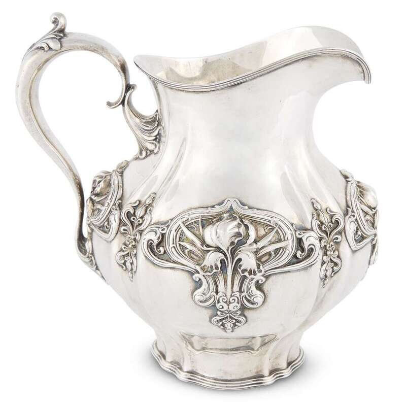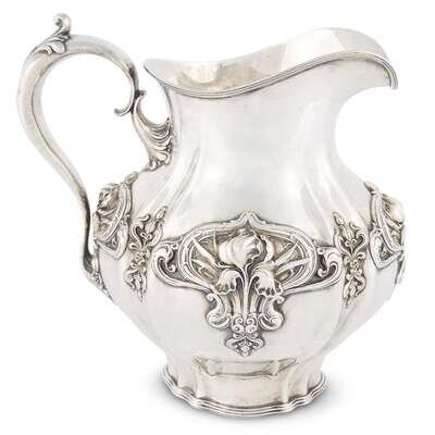 An American sterling silver Art Nouveau water pitcher Whiting Mgf. Co., North Attelboro, MA, circa 1900