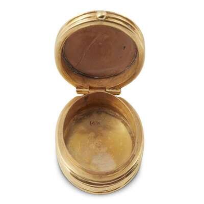 A small Continental 14-karat gold and en plein enamel patch box marked 14K, likely 19th century