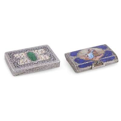 Two Continental silver hardstone-inlaid and enameled card cases late 19th century
