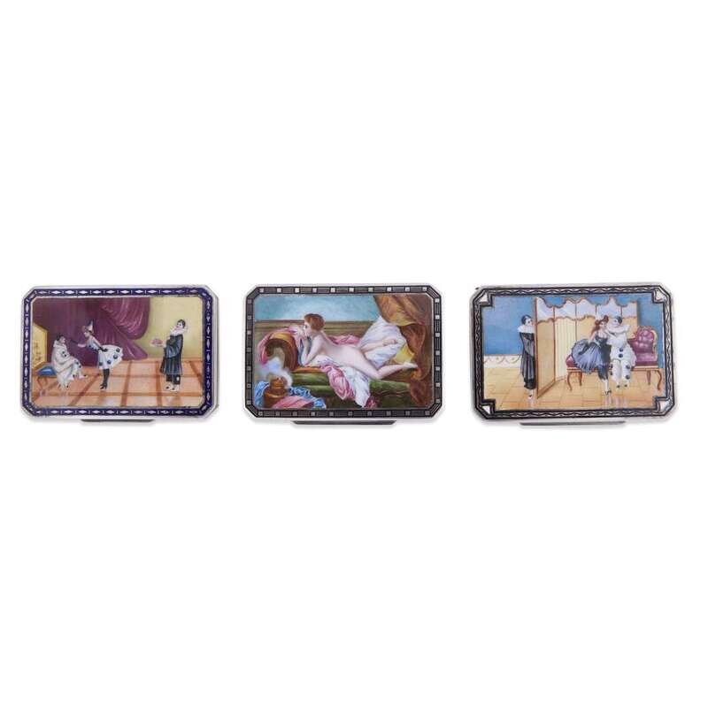 A set of three Austrian en plein enamel card cases first quarter 20th century
