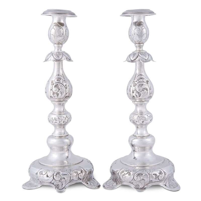 A pair of Russian silver Petrine style candlesticks probably Warsaw, 19th century