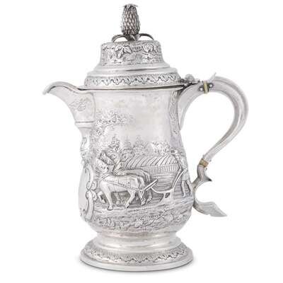 A George III sterling silver repoussé jug Rebecca Emes and Edward Barnard, London, 1789