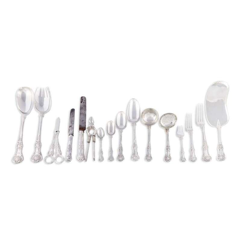 A Victorian sterling silver eight-piece flatware service for twelve Hunt & Roskell, London, 1842-1880