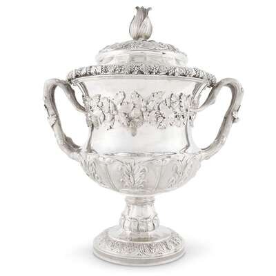 An Edwardian sterling silver presentation urn and cover Rebecca Emes & Edward Barnard I, London, 1904