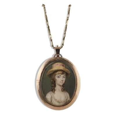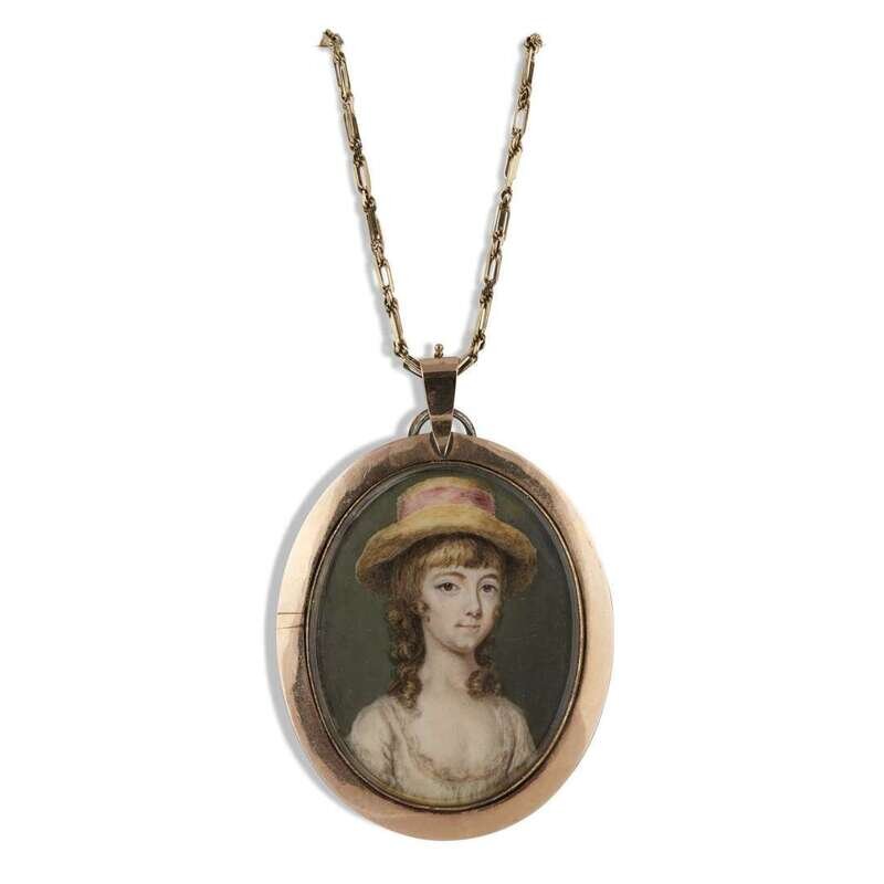A portrait miniature of a girl in a straw hat Richard Collins (English, 1755-1831), circa 1800