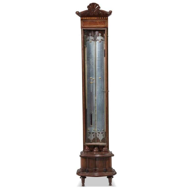An Dutch rosewood-inlaid mahogany barometer-thermometer Taroni en Grosse, Amsterdam, circa 1830