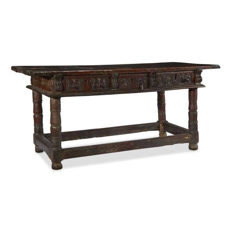 A Spanish Baroque carved walnut and oak refectory table 17th century