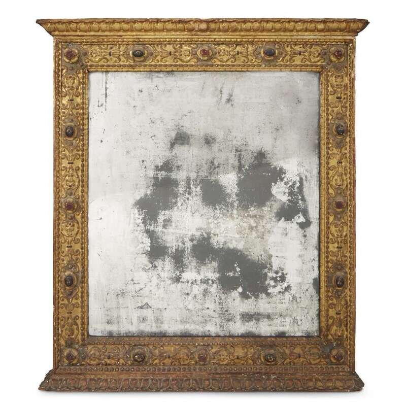 An Italian Renaissance gilt and polychrome gesso mirror from the collection of Stefano Bardini Bergamese, 16th/17th century