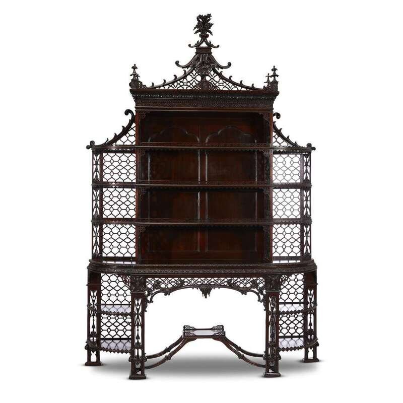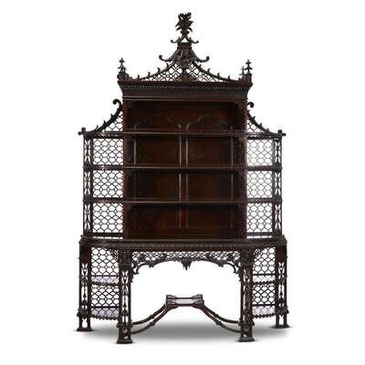 A George III 'Chinese Chippendale' style carved mahogany étagère late 19th/early 20th century