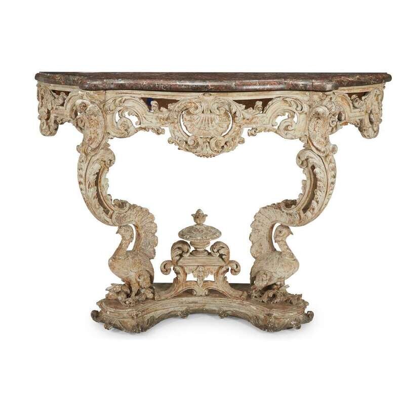 A George III silvered and white-painted console in the manner of Thomas Chippendale (English, 1718-1779) late 18th/early 19th century