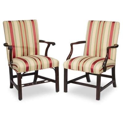 Two George III carved mahogany upholstered armchairs late 18th century