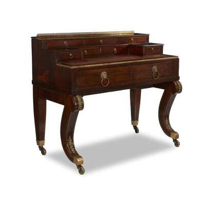 A fine Regency giltmetal-mounted brass-inlaid rosewood veneered desk second quarter 19th century