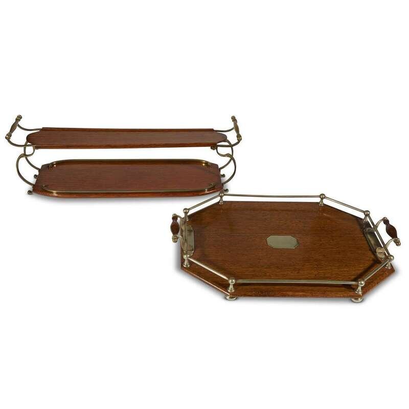 Two Victorian brass-mounted oak serving trays late 19th century