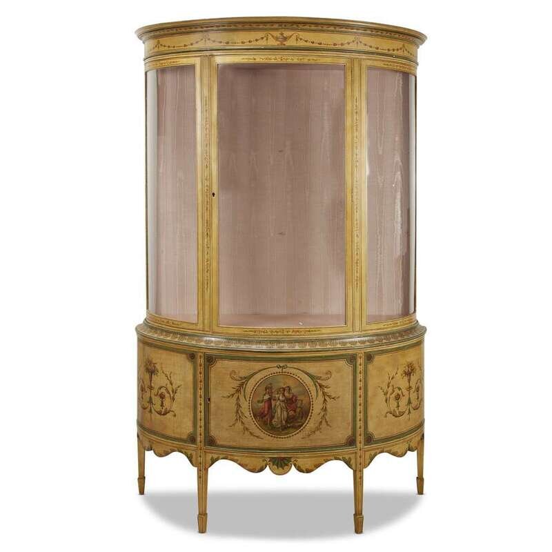 An Edwardian polychrome painted and glazed demilune vitrine early 20th century