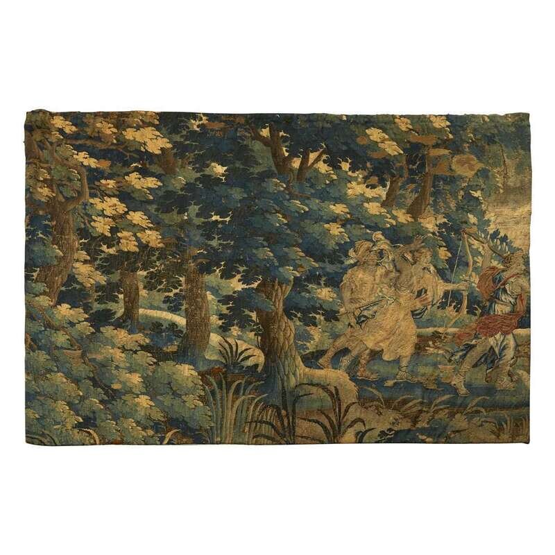 An Aubusson verdue tapestry fragment depicting Diana the Huntress 17th/18th century