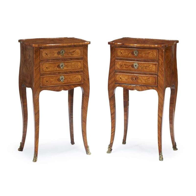A pair of Louis XV/XVI transitional kingwood marquetry tables en chiffoniere circa 1760-80
