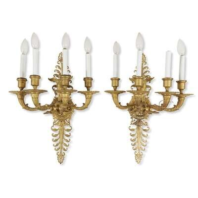 A pair of Empire revival gilt-bronze four-light sconces first quarter 20th century