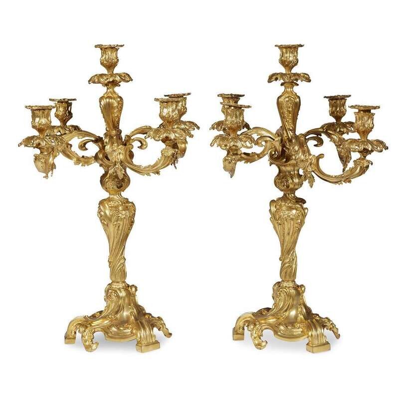 A pair of Louis XV style gilt-bronze five-light candelabra 20th century