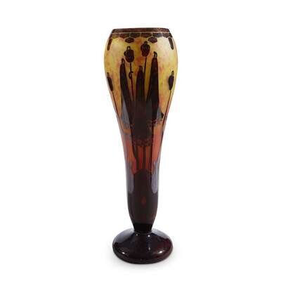 A tall internally-decorated and etched glass vase Le Verre Francais, France, circa 1925