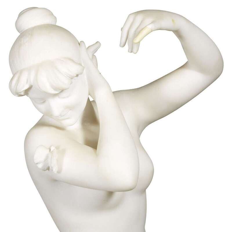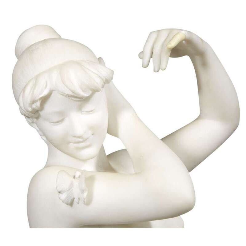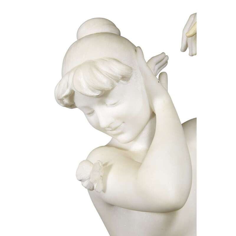 Inscribed, signed and located 'P. Milanesi/Galleria/P. Bazzanti/Florence' on the outside of the pedestal, white marble