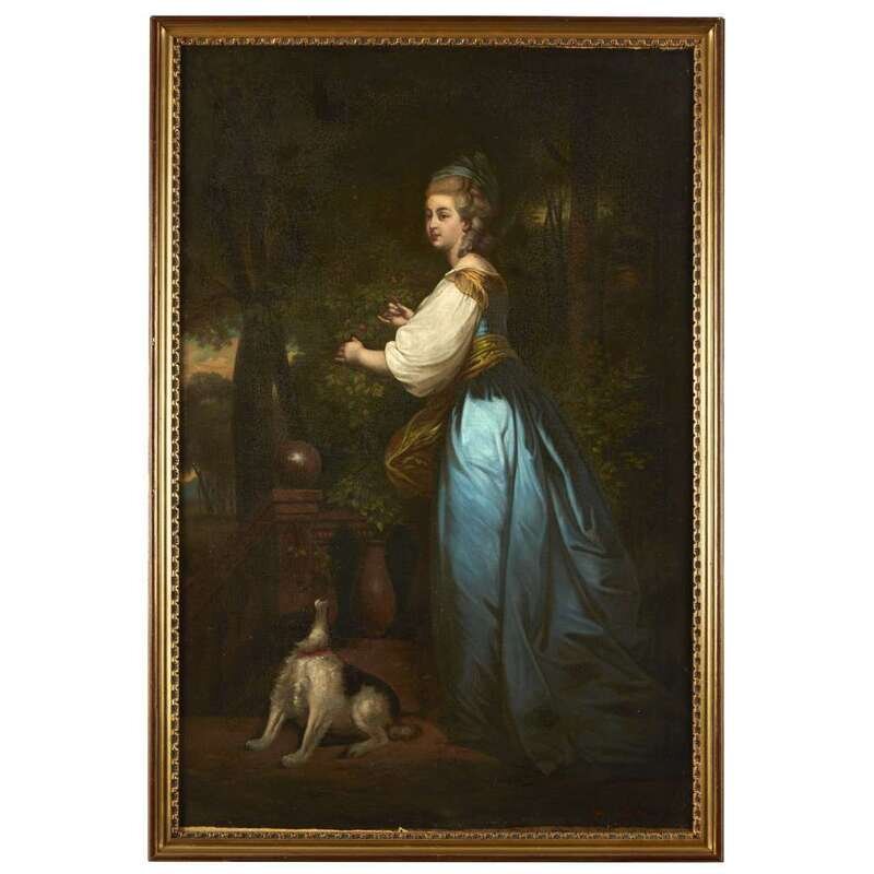 AUSTRIAN SCHOOL (LATE 19TH CENTURY) ARRANGING FLOWERS IN THE GARDEN