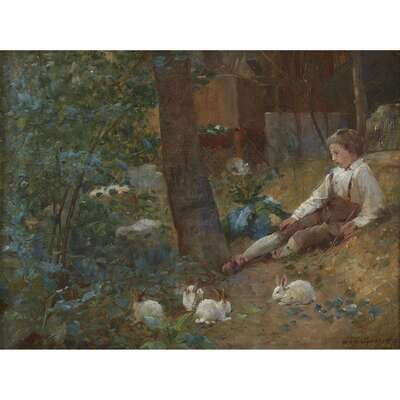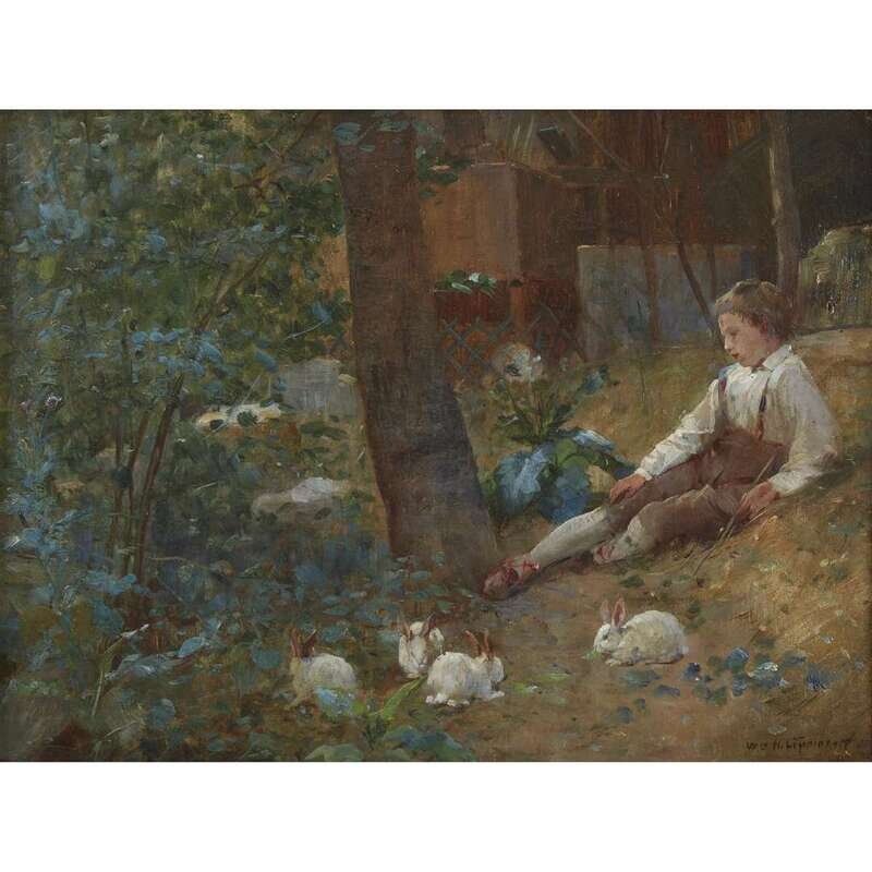 WILLIAM HENRY LIPPINCOTT (AMERICAN 1849-1920) "FEEDING HIS PETS"