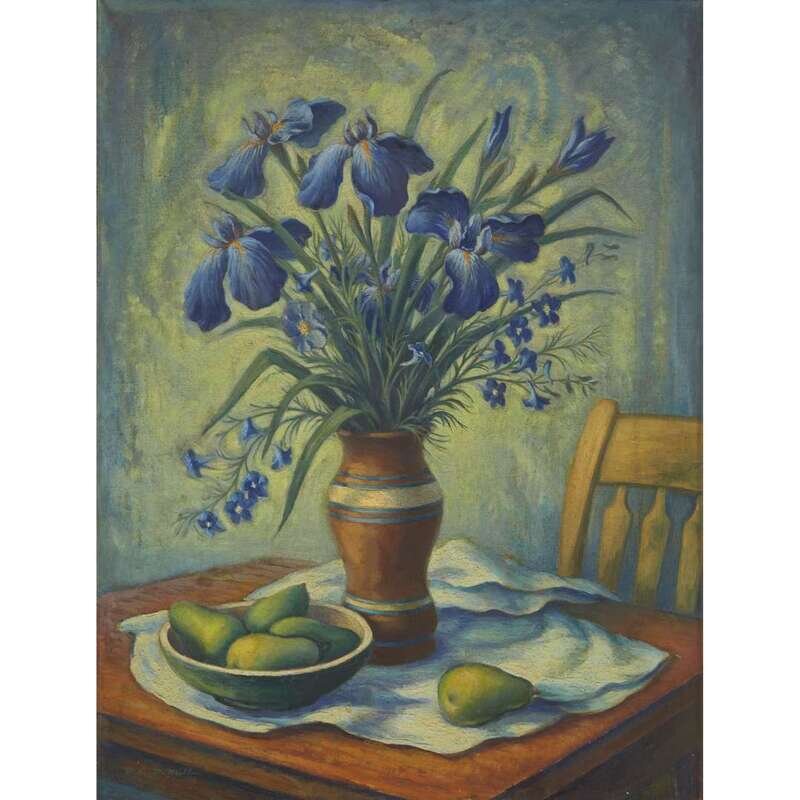 RAD MILLER (AMERICAN 1905–1966) STILL LIFE WITH IRISES