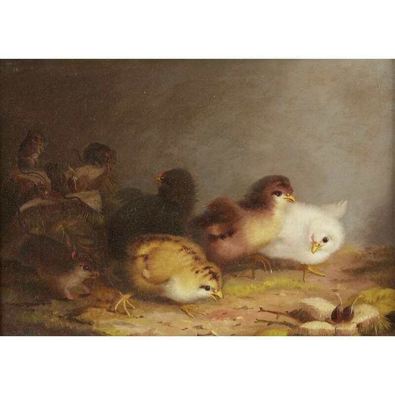 MARY RUSSELL SMITH (AMERICAN 1842–1878) MICE SPYING ON CHICKS