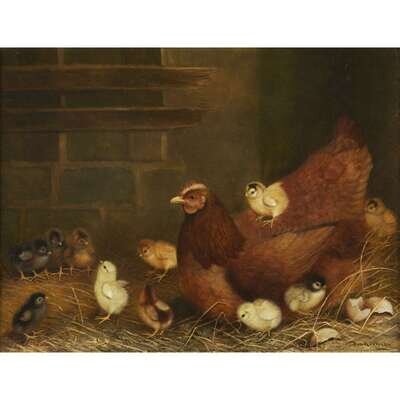BEN AUSTRIAN (AMERICAN 1870–1921) HEN WITH CHICKS